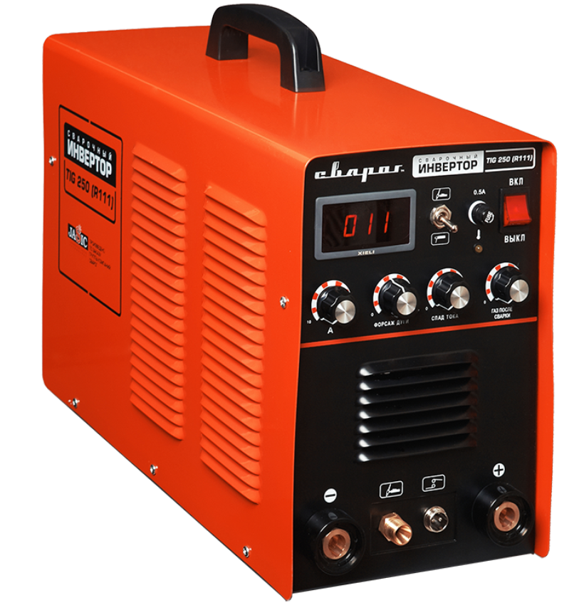 Сварочный аппарат серии STANDART TIG 250 (R111) профессионального уровня для аргонодуговой сварки (TIG) и ручной дуговой сварки покрытым электродом (ММА). Оборудован цифровым индикатором параметров сварки и большим набором ручных регулировок.
