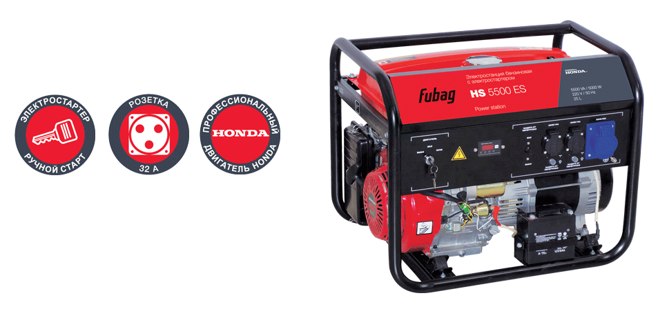 Наклонный металлический козырек над приборной панелью обеспечивает дополнительную защиту элементов панели от неблагоприятных погодных условий.Бензиновый генератор FUBAG HS 5500 ES в продаже по цене 0 руб. в Интернет-магазине Проф-инструмент с доставкой в Иркутске и Иркутской области. Звоните по телефону +8 (800) 302-10-51.