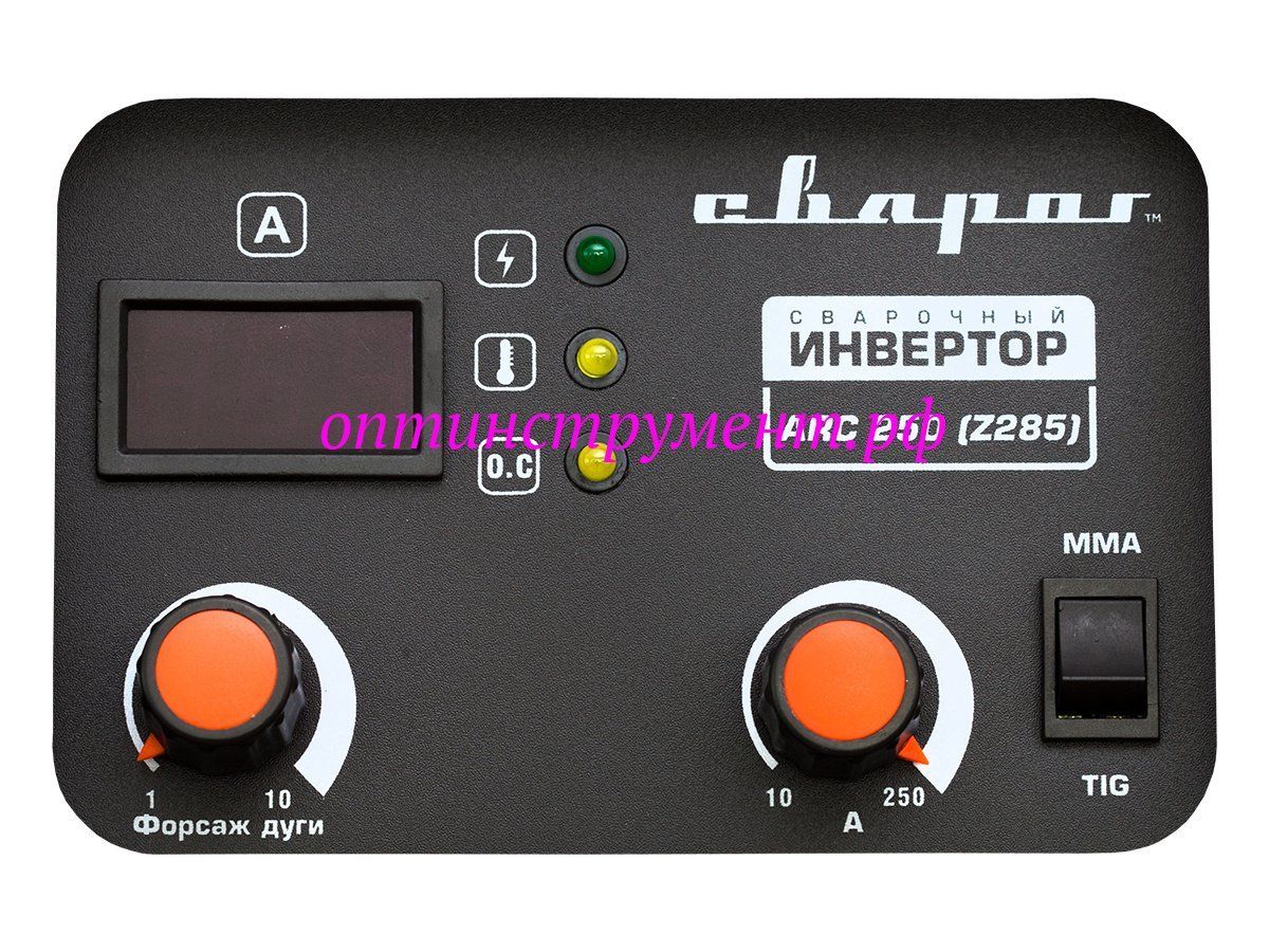 Сварочный инвертор серии STANDART ARC 250 (Z285) — профессиональный сварочный аппарат, предназначенный для ручной дуговой сварки (MMA) и ручной аргонодуговой сварки (TIG) на постоянном токе изделий из низкоуглеродистой стали в производственных условиях. При аттестации данный аппарат получил высокую оценку экспертов НАКС.
