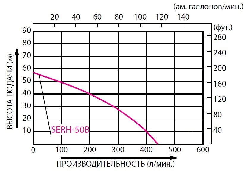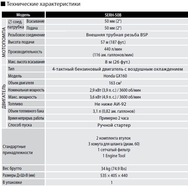позволяет применять мотопомпу в качестве пожарной или для подачи воды на высоту до 50 метров