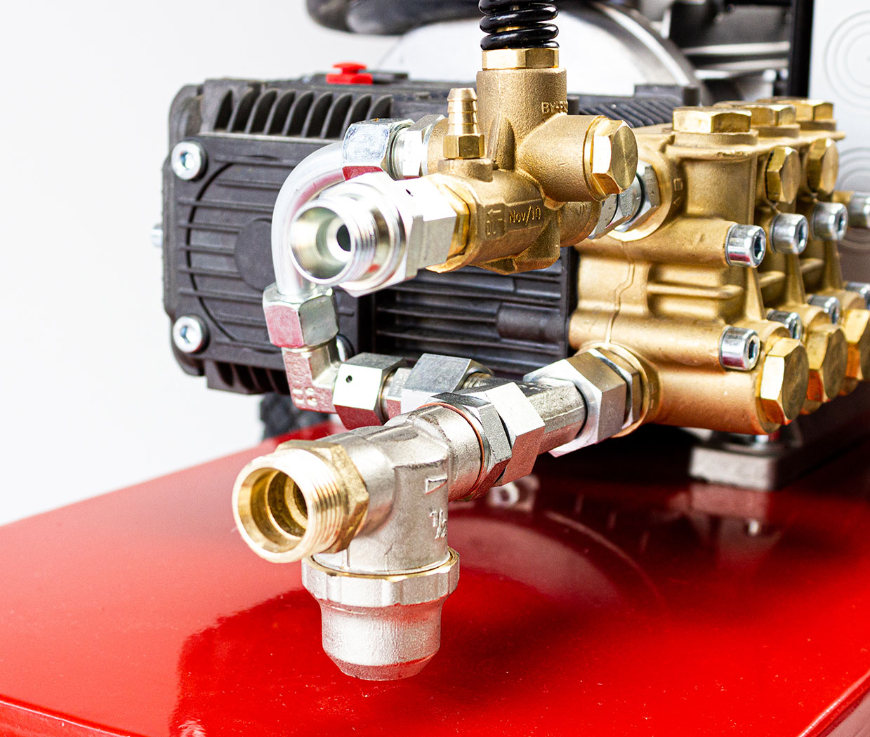 - Трехплунжерный насос высокого давления Annovi Reverberi (Италия). Головка из никелированной латуни с высокой стойкостью к механическим нагрузкам гарантирует длительный срок эксплуатации. Термоклапан для защиты от перегрева;