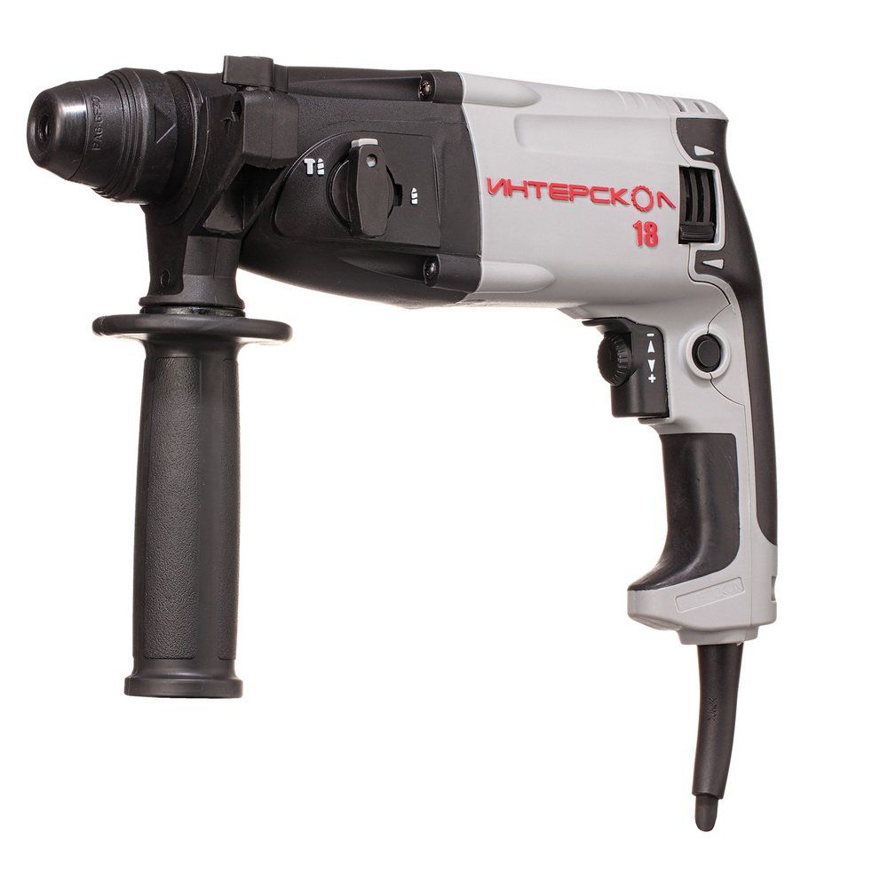Перфоратор Интерскол П-18/450ЭР легкий двухрежимный перфоратор горизонтальной компоновки, самый легкий в линейке «Интерскол», оснащенный ударным механизмом компрессионно-вакуумного типа и зажимом под хвостовики SDS-Plus.